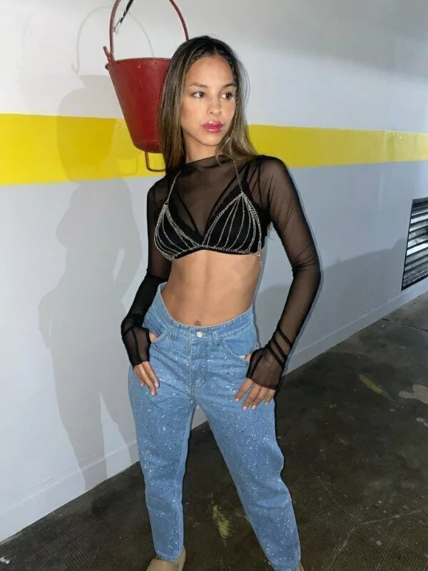 Confeccionado en denim color jean con calce real y cómodo, este modelo está repleto de brillos hotfix que atrapan todas las miradas. Es ese jean que levanta cualquier look sin esfuerzo: de día con zapatillas, de noche con botas y actitud.