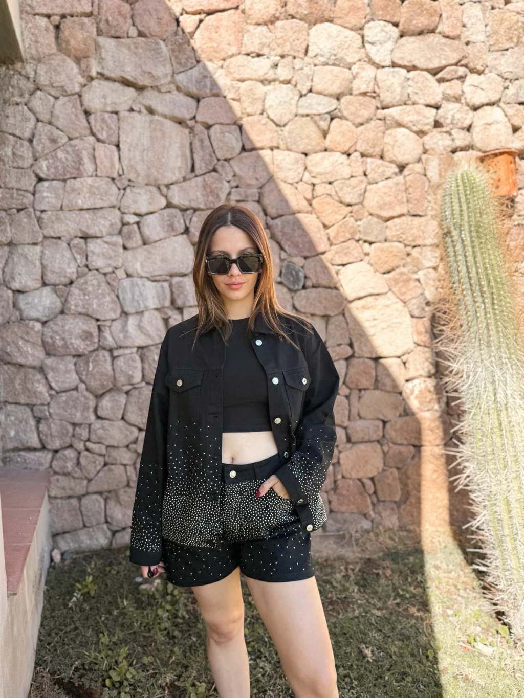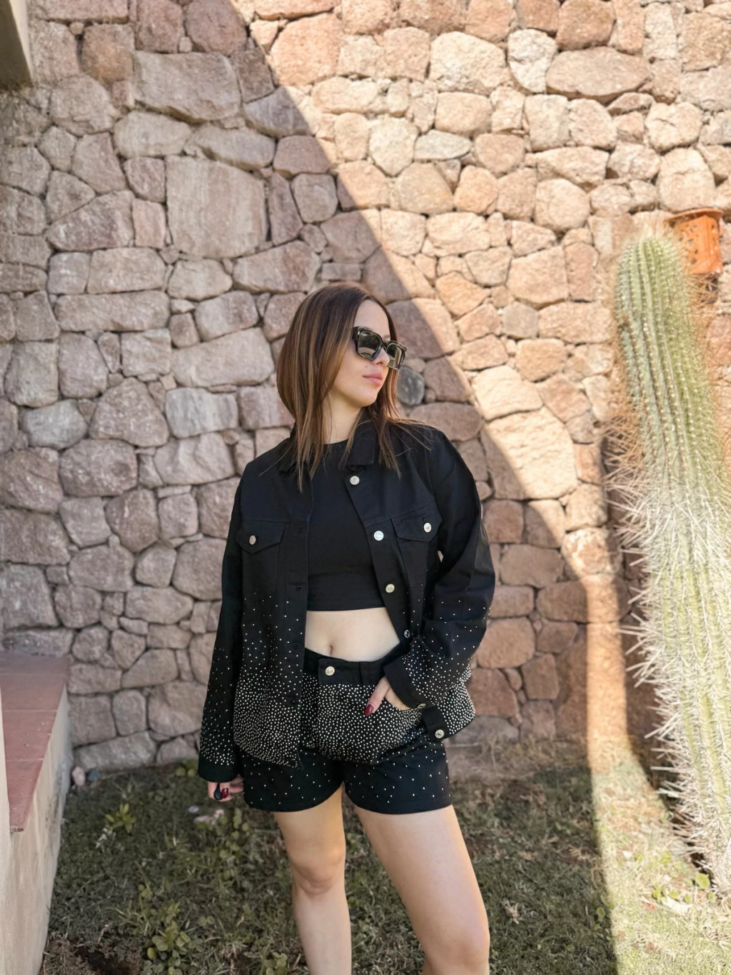 El Short Estelar es rígido, de jean con brillos en todo el frente, y fue hecho para que te sientas imparable. Viene en talles reales del 34 al 60, porque el brillo no tiene medida.